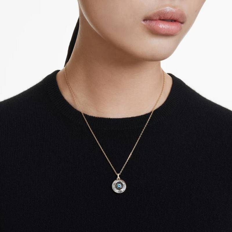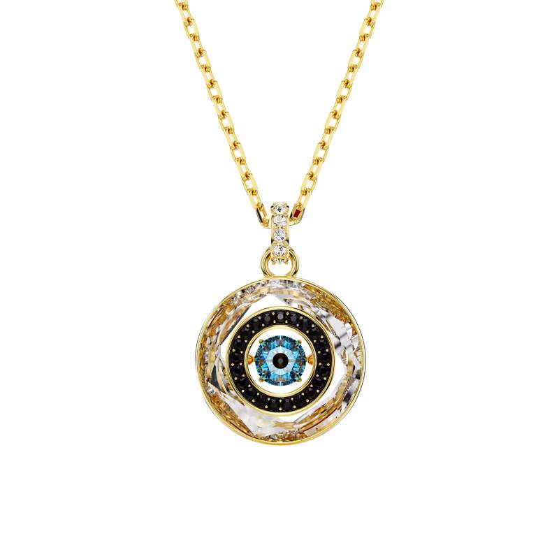 Ce collier de la collection Symbolica vous ornera à merveille. Il est façonné en métal doré et vous accordera un port agréable. Il se forme d'une chaîne en maille forçat travaillée avec finesse et d'un charmant pendentif à l'allure brillante. Ce dernier affiche 2,20 × 1,60 cm et représente un œil porte-bonheur connu pour sa protection contre le mauvais œil. Il arbore un cristal bleu serti à griffes avec un pavé de cristaux noirs et un anneau facetté maintenu par une bélière également sertie de cristaux blancs. Ce ravissant collier affiche 38 cm de longueur avec une chaînette d'extension ornée d'un cristal blanc à la forme octogonale. Elle permet d'ajuster le bijou jusqu'à 42 cm et grâce à son fermoir mousqueton, vous pourrez le manipuler selon vos envies. Ce collier signé par le logo de la marque rehaussera votre look au quotidien.