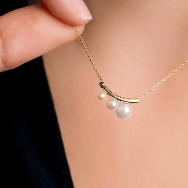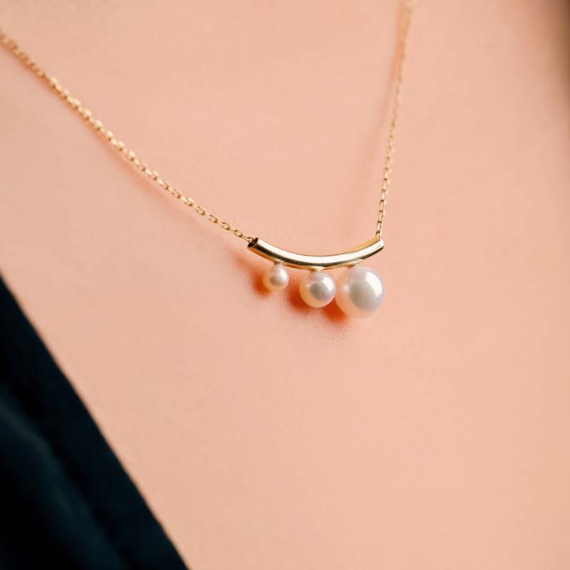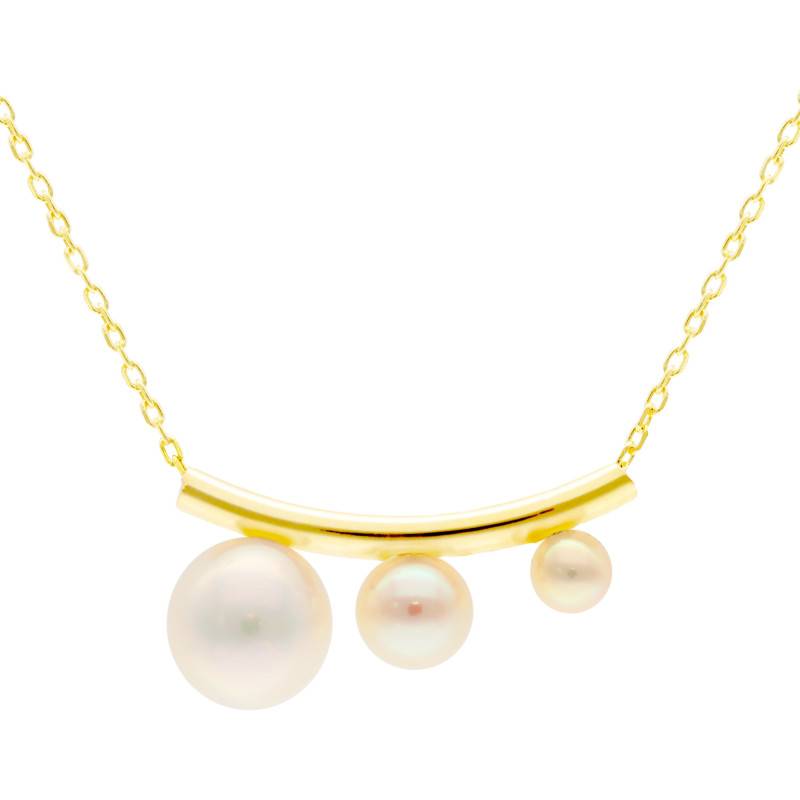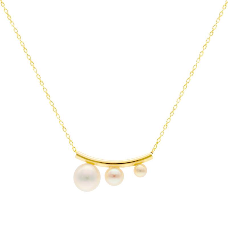 Le Collier Trilogie de Perles Dégradé & Or Jaune 375 incarne la rencontre parfaite entre élégance et légèreté. La douce lueur des perles, suspendues sur une arche dorée, crée un jeu de lumière subtil au creux du cou. Réalisé en or jaune 375/1000 (9K) et doté d'une finition polie et brillante, ce bijou rayonne d'un éclat intemporel. D'une longueur ajustable de 40 à 42 cm et d'une épaisseur de 0,40 mm, il pèse 1,04 g et se ferme aisément grâce à un fermoir anneau à ressort.