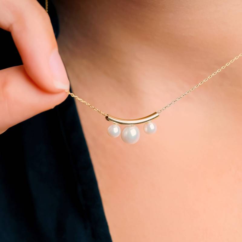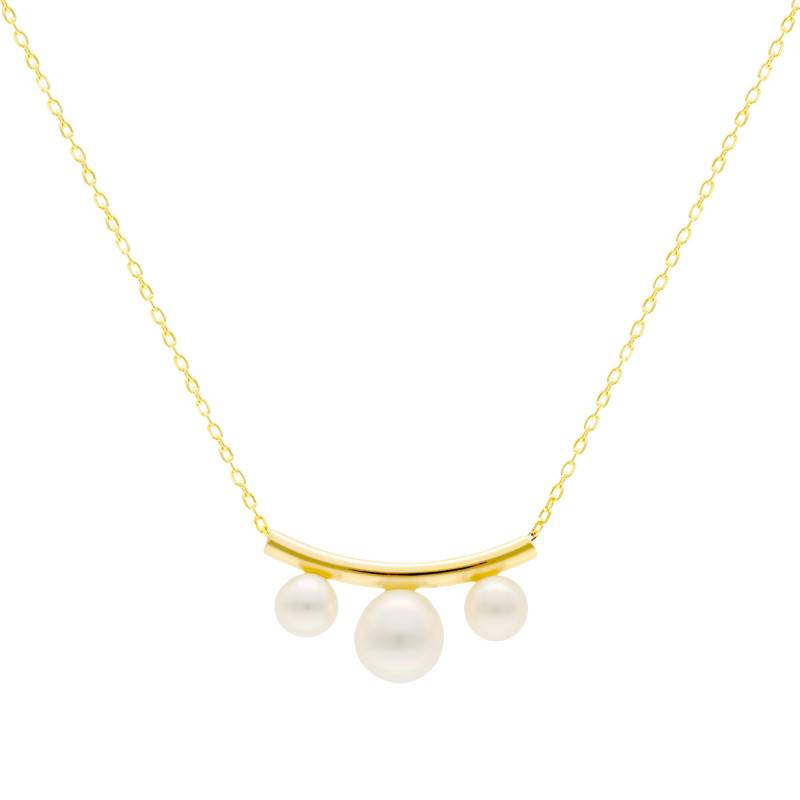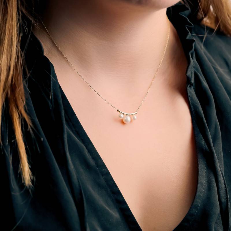 Le Collier Trilogie Perles Blanches & Or Jaune 375 est une ode à la féminité. Réalisé en Or jaune 375/1000 (9K), il se pare de trois perles blanches suspendues avec élégance, révélant un éclat pur et harmonieux. Sa finition polie et brillante capte la lumière avec grâce. D'une longueur ajustable de 38 à 41 cm, pour une épaisseur de 0,40 mm et un poids de 1,07 g, ce collier allie légèreté et raffinement. Le fermoir à anneau à ressort garantit une fermeture sûre et discrète.