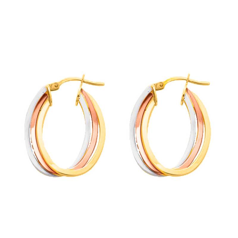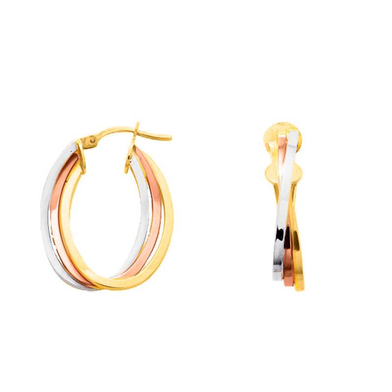 La maison vous propose cette ravissante paire de créoles réalisée en 3 ors : en or jaune, or blanc et or rose 750/1000 (18K). Elle présente une largeur de 4,50 mm et un diamètre extérieur de 22 mm et intérieur de 12 mm. Les 3 ors symbolisent l'amour, l'amitié et la fidélité, c'est pourquoi ces boucles d'oreilles sont le cadeau idéal à faire à quelqu'un de cher. Le fermoir à ouverture charnière raide vous permettra de passer la journée avec vos boucles d'oreilles sans vous souciez de les perdre.