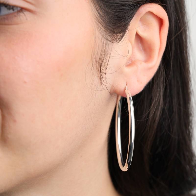 Ces ravissantes boucles d'oreilles créoles ont été fabriquées en argent 925/1000 passivé. Ces créoles affichent un diamètre de 50 mm et un fil de 4 mm. Le boucles d'oreilles pèsent en moyenne 5,40 grammes.