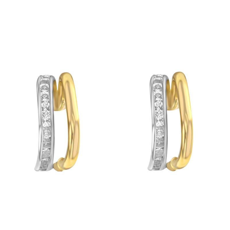 Découvrez ces magnifiques boucles d'oreilles créoles en or 375/1000 (9K). Leur forme demi ouverte est soulignée par deux branches distinctes. La première se veut sobre par son aspect jaune poli, tandis que la deuxième branche se présente avec un serti d'oxydes de zirconium sur de l'or blanc. Ces bijoux disposent d'une hauteur de 14,5 mm, d'une largeur de 5 mm et d'un diamètre intérieur de 9 mm . Elles disposent de 38 oxydes de zirconium sur leurs branches serties. Enfin, cette paire de boucles se maintiendra à vos oreilles grâce à un fermoir poussette papillon.