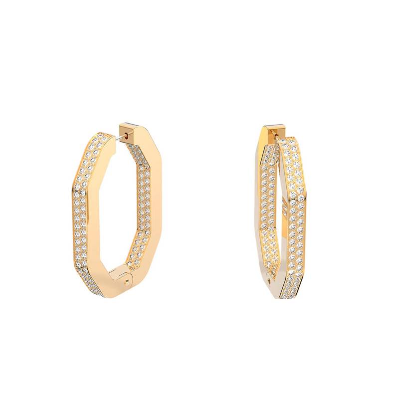Aujourd'hui Ocarat vous propose ces créoles grand format, de forme géométrique et de couleur dorée elles sont sertis de cristaux Swarovski blanc. Très originales elles apportent une touche de modernité à tous vos looks.