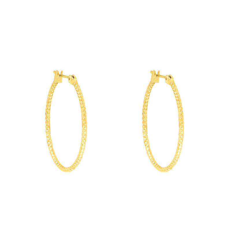 A l'univers raffiné et subtil, cette splendide paire de créoles réveillera votre style, vous vivrez pleinement le début des beaux jours avec ce modèle ethnique et tendance. De qualité, composée d'un plaquage en or jaune 3 microns, laissez-vous séduire par le charme cette paire de créoles, elle fera fureur une fois portée et sublimera votre look en toutes circonstances ! Elles mesurent 2,90 cm de diamètre.
