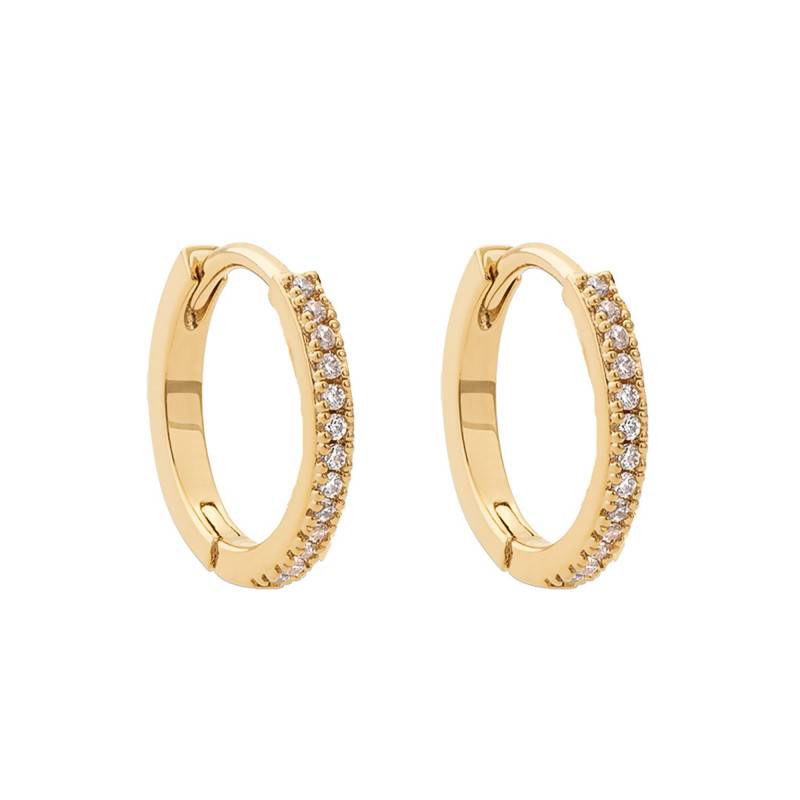 Choisissez la simplicité et la modernité avec cette paire de créoles. Fines et raffinées, elles sont en plaqué or 3 microns pour une qualité supérieure. Légères et discrètes, leur diamètre est de 10mm ou 15 mm et possèdent une fermoir à clip pour les porter facilement. Afin d'apporter une touche de brillance et de lumière à votre visage, elles sont serties d'une ligne d'oxydes de zirconium.