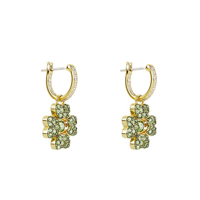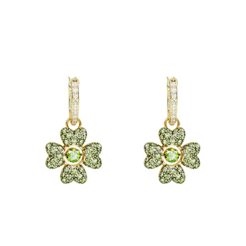 Nous avons choisi pour vous ces boucles d'oreilles créoles de la collection Idelliya, raffinées et scintillantes. Chacune se compose d'une créole pavée à l'intérieur et à l'extérieur de cristaux blancs qui supporte un trèfle encastré de cristaux verts. Au centre de cette feuille, se place un cristal rond qui accentue l'élégance du bijou. L'ensemble est serti à grains sur une monture en métal doré formant un mélange fascinant de coupes et de couleurs. Ces pendantes se maintiendront à vos oreilles grâce à des fermoirs clipables. Notez que ces boucles d'oreilles ont une dimension de 2,5 cm x 1,4 cm et pèsent 2,5 g chacune.