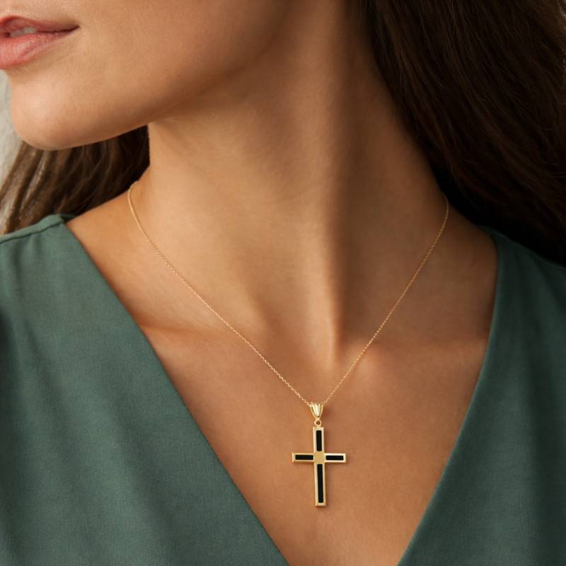Cette Croix en Onyx et Or Jaune 375 est une merveille de simplicité et de raffinement. Sculptée dans un Or Jaune brillant et purifié à 375/1000 (9K), elle est ornée d'un onyx noir en son centre, symbolisant la profondeur et le mystère. La largeur de 25 mm et la hauteur de 45 mm s'unissent dans une parfaite harmonie, tandis que son poids délicat de 1,70 g assure une présence discrète et élégante. Ce bijou, à la finiton polie et brillante, saura capter la lumière et magnifier votre présence. Résolument unisexe, il célèbre l'universalité de la beauté.