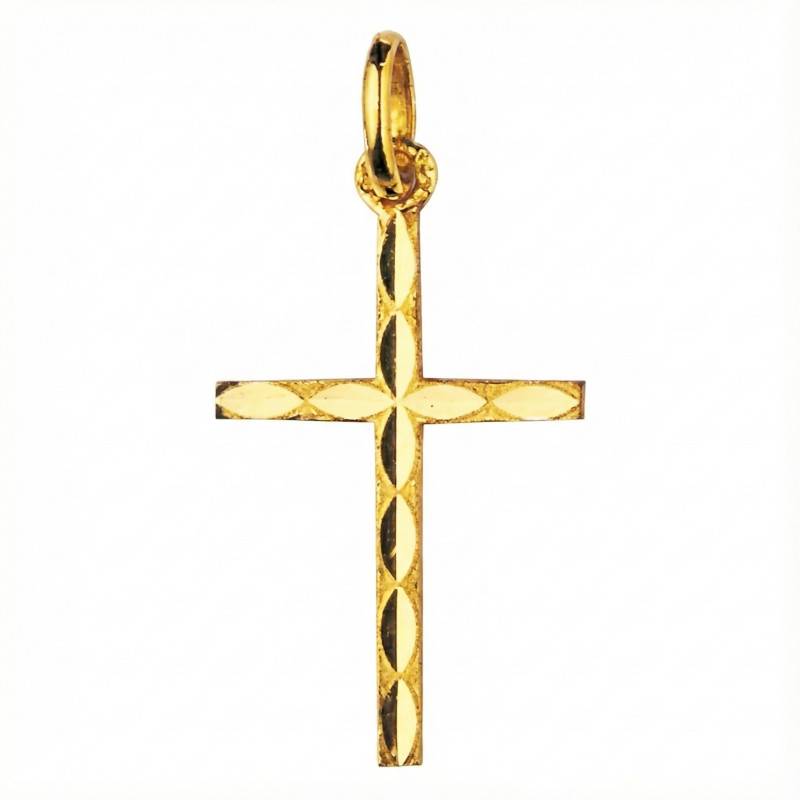 Découvrez la Croix Facettée Plaqué Or, un bijou d'une splendeur éclatante, où le jeu des facettes illumine chaque instant de la journée. Confectionnée avec soin en laiton et revêtue d'un plaquage or jaune, cette croix séduit par sa luminosité et sa délicatesse. Avec une hauteur de 18 mm et une largeur de 12 mm, elle épouse harmonieusement le cou, tout en demeurant légère avec un poids de 0,35 g. Une garantie de 2 ans assure la pérennité de sa beauté.