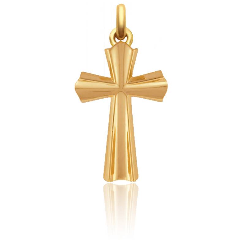 Cette croix en or jaune 750/1000 (18K) et d'une hauteur de 35 mm et d'une largeur de 24 mm, son poids d'or moyen est de 4 grammes.