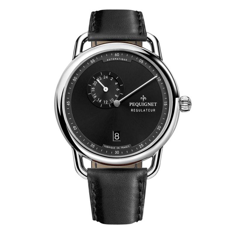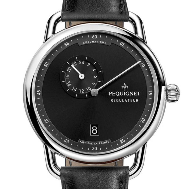 Avec son boitier en acier inoxydable 316L aux finitions polies, ce modèle Equus Régulateur de la maison indépendante française Pequignet se positionne entre tradition et innovation. Affichant un diamètre de 41mm pour une épaisseur de 11,5mm et intégrant un verre saphir traité antireflet, son côté atypique entre dans la continuité de la collection historique de la maison horlogère française rendant hommage à la passion du cheval du créateur Emile Pequignet. Le fond de boite est un fond à pression intégrant des finitions en relief Clou de Paris ainsi qu'un logo représentant une fleur de Lys, emblème du facteur horloger. La couronne antique se place aux 3h. Le design novateur de ce garde temps saura combler tout amateur de montres classiques avec un design résolument original.