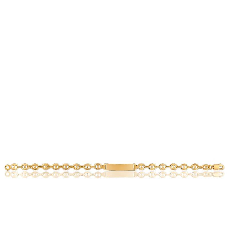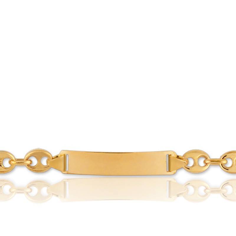 Découvrez cette gourmette enfant/adolescent en or jaune 750/1000 (18K) de la maison française Lucas Lucor. Agrémentée d'une chaîne maille grain de café finement travaillée dont les grains mesurent 3x4 mm, elle offre en son centre une plaque rectangulaire. La gourmette en or présente une longueur de 14 cm.