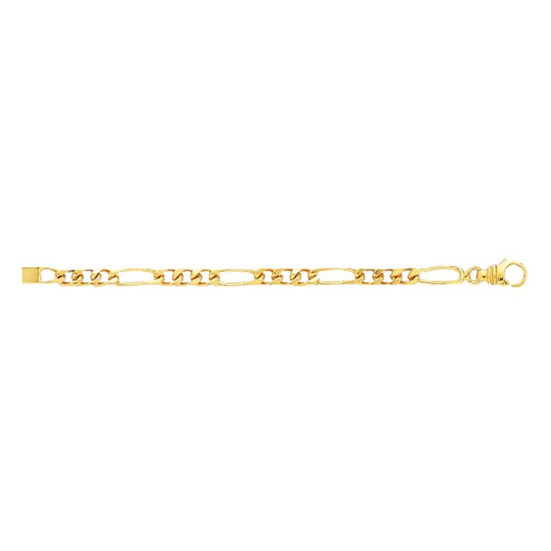 Gourmette identité en or jaune 750/1000 (18K), maille cheval alternée 3-1 de 23 cm fermée (3 petits anneaux alternés avec un grand). Vous pouvez personnaliser cette gourmette recto verso gratuitement. La maille massive de cette gourmette identité vous garantit une solidité et une durée sans faille. Le fermoir est un mousqueton pour les largeurs de 3 à 5 mm sinon il s'agit d'un cliquet.