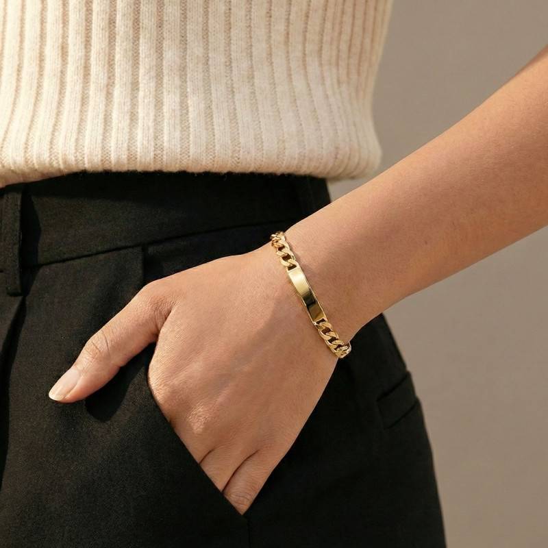 Comme cette magnifique gourmette Identité qui a été réalisée avec soin par la marque Emanessence. Elle vous offre donc une qualité irréprochable pour une splendeur à couper le souffle. Elle est faite en or jaune 750/1000 (18K) et se compose d'une maille cheval alternée 1-1. Il s'agit donc d'un produit qualitatif et resplendissant que vous pouvez personnaliser en gravant la plaque à votre guise.