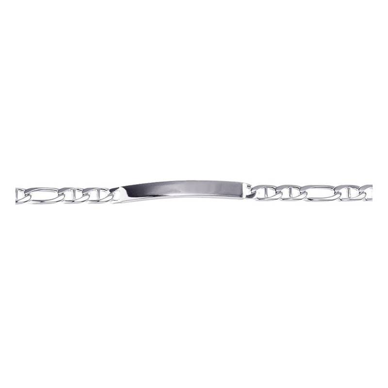 Emanessence vous propose cette gourmette identité fabriquée en argent massif. Elle vous est proposée avec une largeur de 4 mm. La maille qui forme cette gourmette est une maille marine alternée plate. La plaque est gravable pour pouvoir la personnaliser à votre goût. Elle est de dimensions 4 x 30 mm. Le poids d'argent est en moyenne de 6,80 grammes à la fabrication pour une gourmette en argent d'une longueur de 18 cm. Vous avez la possibilité de changer la longueur du bracelet en vous référant au menu déroulant.