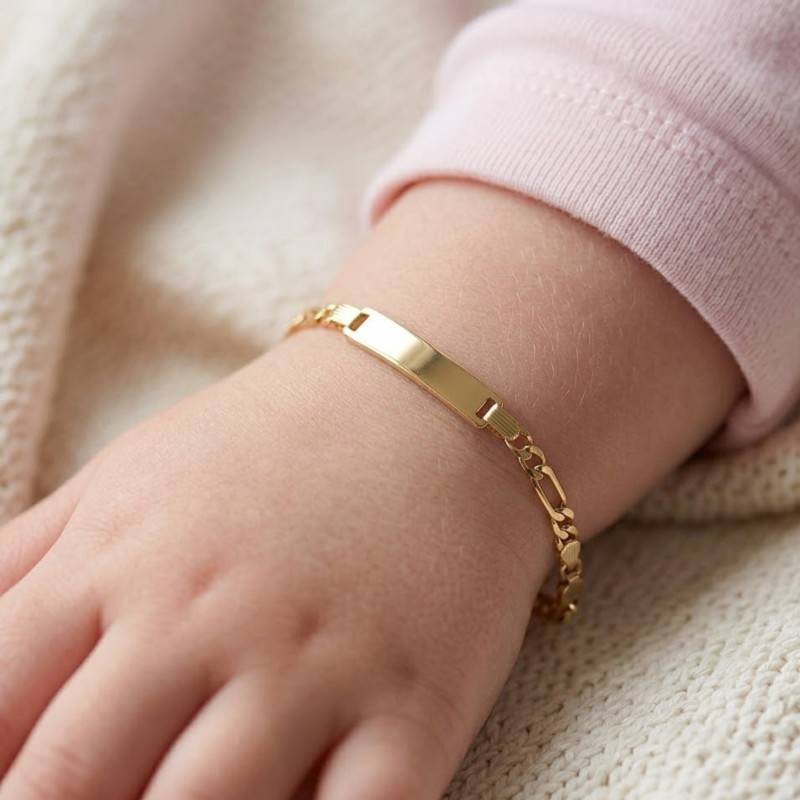 Succombez à l'élégance de cette Gourmette Bambins en Or Jaune 18K, un bijou précieux conçu pour accompagner les plus petits durant de longues années. Ce modèle se distingue par sa maille cheval alternée triple de 2,50 mm de largeur, arborant une finition polie et brillante qui capte magnifiquement la lumière. Réalisée en or jaune 750/1000 pour un poids d'or moyen de 3,30 grammes, elle dispose d'une plaque rectangulaire centrale idéale pour une personnalisation ainsi que d'un fermoir mousqueton sécurisé.