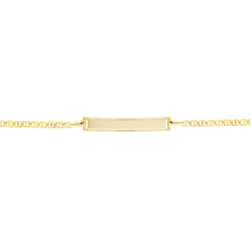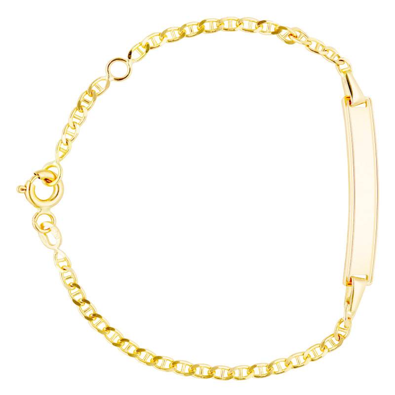 Cette gourmette en or jaune 750 est une œuvre d'art petite mais éclatante, conçue spécialement pour les enfants. Son Or Jaune 375/1000 (9K) éclatant capture la lumière du jour pour la transformer en un doux éclat doré. La maille marine confère à cette pièce une robustesse élégante, tandis que son fermoir à anneau à ressort assure un port sans souci. Avec une longueur de 14 cm, elle repose délicatement sur le poignet, évoquant la pureté et la simplicité de l'enfance. Son poids léger de 1,95 g fait d'elle une compagne de tous les jours. Une Gravure est possible.