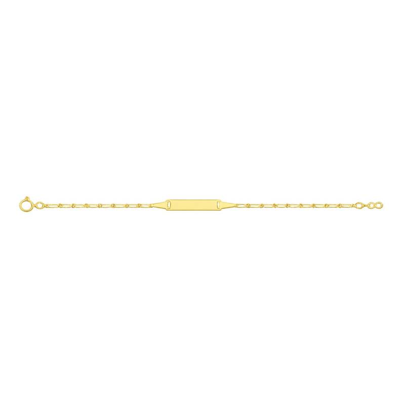 La Gourmette plaqué or en maille cheval alterné évoque la douceur et la tendresse des premiers pas dans le monde du bijou. Son éclat doré, d'un jaune solaire, enlace le poignet avec grâce. Fabriquée avec soin en laiton plaqué or de 3 microns, elle garantit une qualité et une durabilité de rêve. Le fermoir à anneau à ressort assure une fixation sûre tout en ajoutant une touche d'élégance. Avec sa longueur de 15 cm et son poids de métal délicat de 1,70 g.