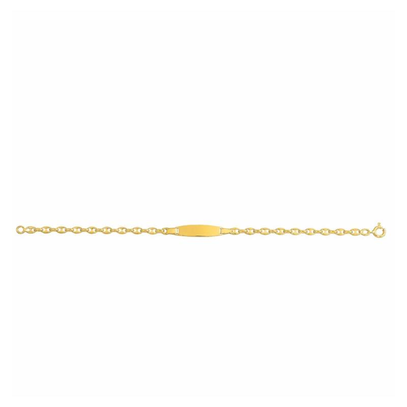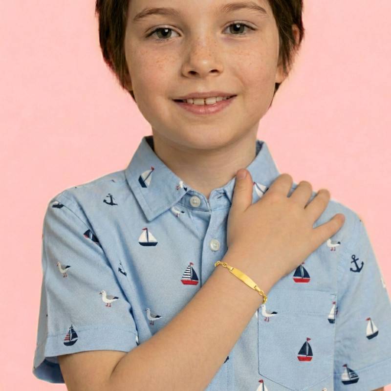 Laissez-vous séduire par cette gourmette en plaqué or aux accents chaleureux et lumineux. La maille grain de café évoque des promenades ensoleillées dans les champs de blé, ajoutant une touche poétique au poignet délicat d'un enfant. Confectionnée en laiton plaqué or de 3 microns, elle promet une robustesse discrète, tout en pesant légèrement 2,80 g. Avec un fermoir à anneau à ressort, elle s'enroule avec grâce sur le poignet de votre petit trésor, mesurant 15,00 cm de long. Cette gourmette est bien plus qu'un simple bijou, elle est un messager du temps et des souvenirs innocents.