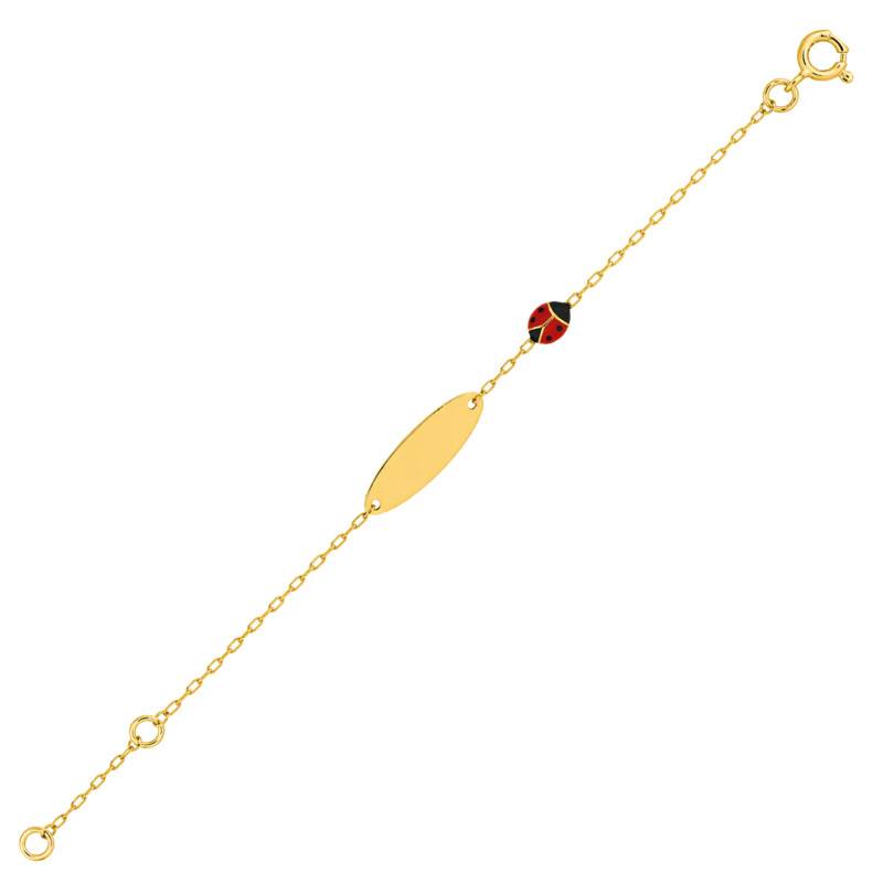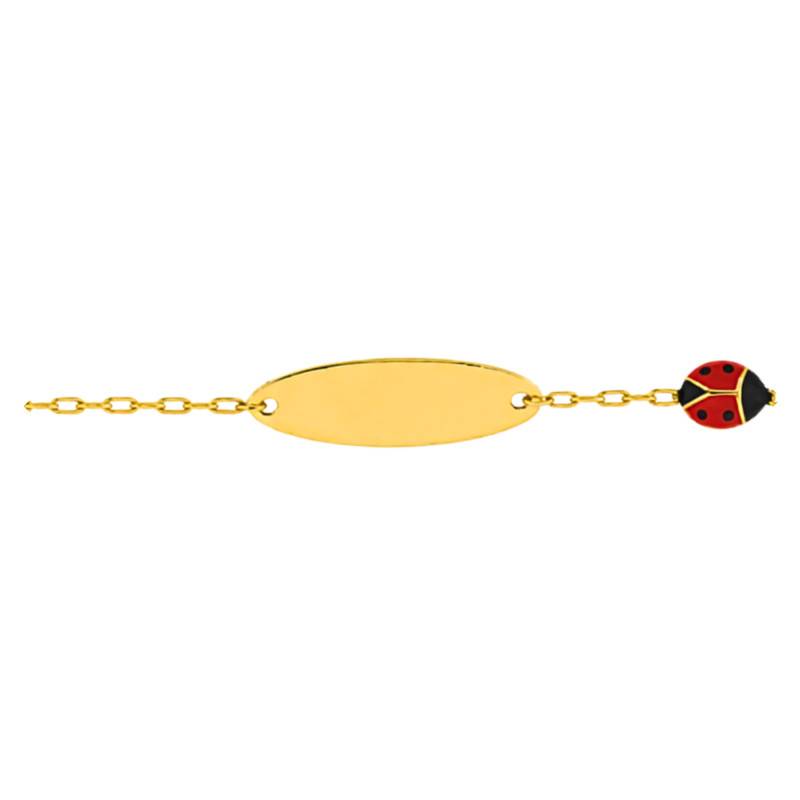 Gourmette Plaque Ovale Coccinelle en Or Jaune 375, Longueur 14 cm Ajustable
