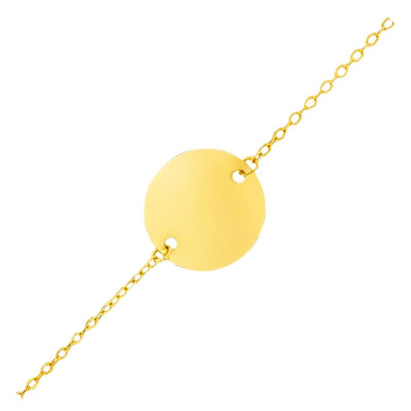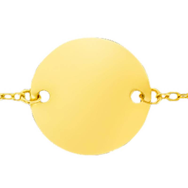 Il est composé d'une plaque ronde à la finition polie et brillante que vous pourrez graver avec le prénom et la date de votre choix. Nous vous proposons deux polices pour cela, une police anglaise et une autre appelée "bâton" ou "times". Cette médaille centrale a un diamètre de 13 mm et est maintenue de part et d'autre par une chaîne en maille forçat diamantée d'une largeur de 1,20 mm.