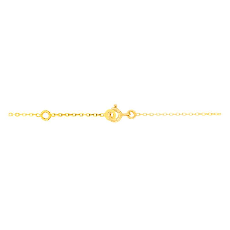 La chaîne est composée d'un anneau de réglage situé à 11,50 cm et un autre à 13 cm. Un anneau à ressort vous permet de fermer votre bijou de manière sécurisée. Le poids d'or moyen de ce bijou est de 1,40 gramme.