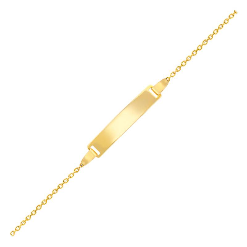 Nous vous proposons cette gourmette en or jaune 375/1000 (9K). Elle a été conçu spécialement pour les enfants. En effet, elle a une longueur de 12 cm à 14 cm ou de 14 cm à 16 cm, pouvant se régler à l'aide des anneaux intermédiaires pour les poignets les plus fins. De plus, la chaîne forçat de 3 mm est résistante. La plaque centrale est de forme rectangulaire où vous pouvez bien évidemment graver ce que bon vous semble. Enfin, son poids plume de 0,97 gramme permet à l'enfant d'être libre dans ses mouvements sans avoir le sentiment de porter un bijou.