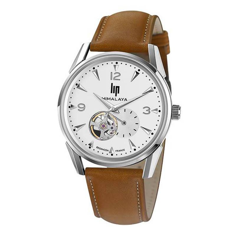 Voici une montre originale et très jolie visuellement. Le modèle Himalaya Coeur Battant de la marque Lip offre un magnifique mouvement automatique "à coeur ouvert" qui vous permettra de visualiser ce mouvement. Le boitier est en acier poli ayant un diamètre de 40mm et une épaisseur de 13.60mm. Le fond de boite est vissé et transparent afin d'admirer la masse oscillante typique du mouvement automatique. Le boitier est surplombé d'un verre saphir bombé. Vous avez une couronne située à 3h avec le blason de la marque.