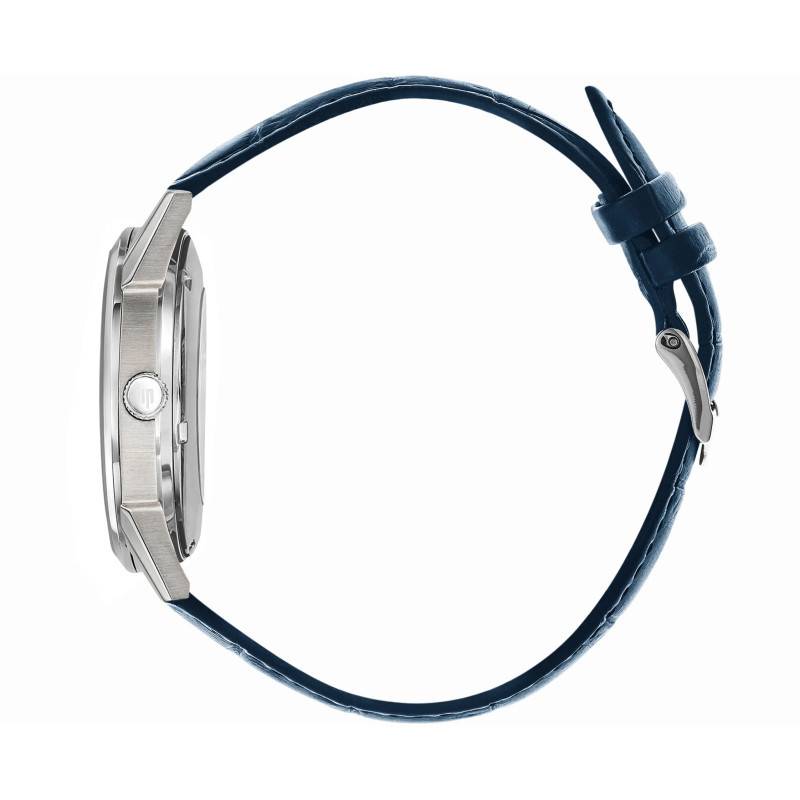 Un bracelet en cuir de couleur bleue nuit avec surpiqures bleues accompagne ce garde-temps d'exception, il est fourni d'une boucle ardillon en acier.