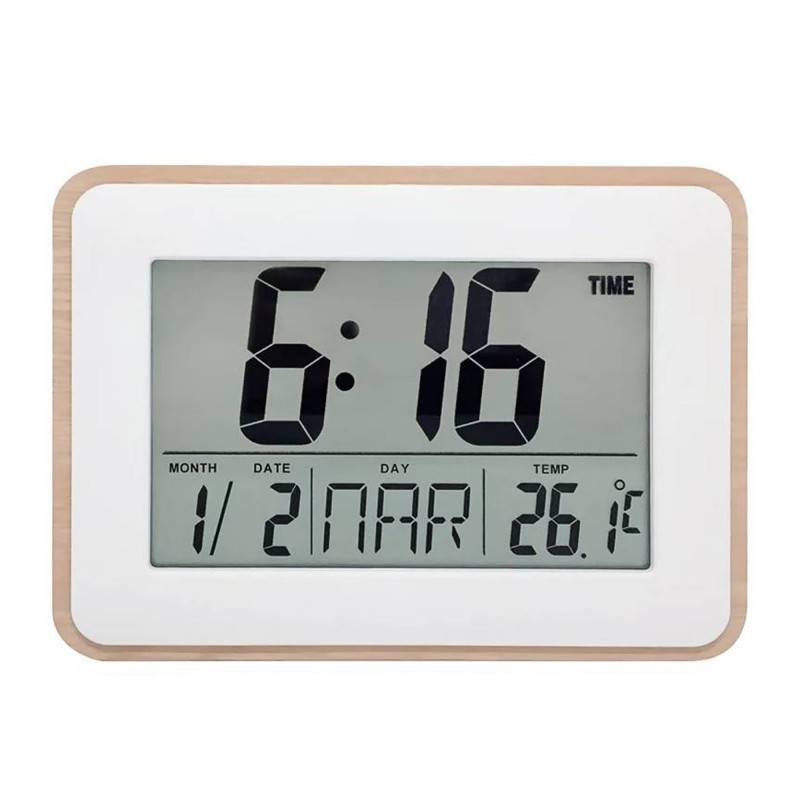 Découvrez le nouveau modèle d'horloge fonctionnelle de la marque horlogère Vedette. Son boîtier en bambou blanc est de forme rectangulaire et mesure 18 centimètres de longueur sur 13 centimètres de largeur pour une épaisseur de 3,7 centimètres. Le cadran numérique affiche les heures et les minutes mais aussi la date et le jour en anglais ainsi que la température. Vous pourrez également régler une alarme quotidienne.