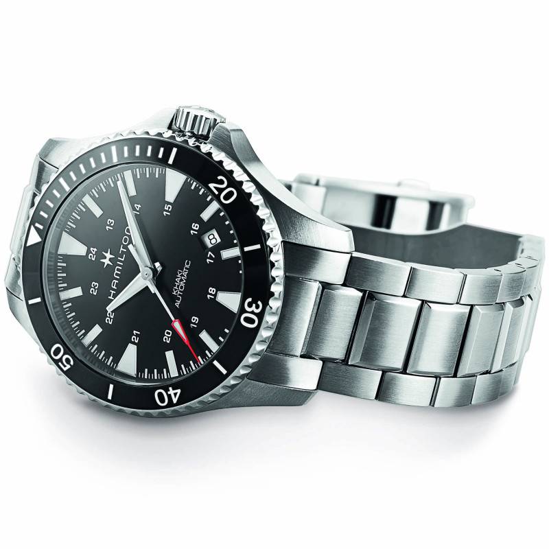 C'est dans la volonté de pérenniser la marque qu'Hamilton étend ses collections. D'ores et déjà très populaire dans le monde de l'horlogerie de luxe, la maison continue ses évolutions dans la recherche de la perfection à chaque détail. C'est pour cela qu'elle vous propose un nouveau modèle de la collection Khaki Navy Scuba. Fait d'acier inoxydable, son boitier est robuste et inrayable. D'une taille de 40 mm, il s'accompagne d'un verre saphir lui aussi résistant à tous les chocs de par ses caractéristiques hors du commun. Son mouvement, automatique, est à la pointe de la technologie vous assurant une fiabilité à toute épreuve. Mais n'oublions pas que cette collection accueille des plongeuses à la recherche des fonds marins. C'est pour cela que ce garde-temps possède une étanchéité de 100 mètres.