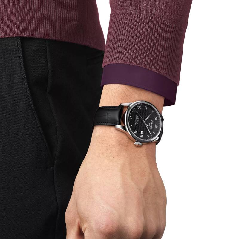 De forme ronde et de couleur noire, il accueille trois aiguilles de couleur grise afin d'indiquer les heures, les minutes et les secondes. Les heures sont marquées par des chiffres romains de couleur argentée, tandis que les minutes et les secondes se lisent via un chemin de fer des minutes, également de couleur argentée. La date est située dans un guichet placé à 3h sur le cadran. Le nom de la marque ainsi que son année de création sont indiquées à 12h, et le nom de la collection "Le Locle" suivi de la mention "automatique" se retrouvent à 6h. Ces deux composantes du cadran apporte une légitimité à la montre et un aspect vintage et épuré. Il est à noter que le cadran comporte des finitions clous de Paris en son centre, et des finitions lisses sur le pourtour du cadran, offrant donc une double finition pour l'ensemble du cadran.