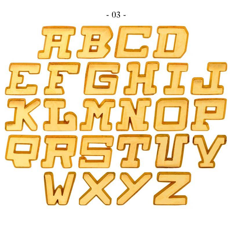 Chaque lettre est en or 750/1000 (18K) et rajoute en moyenne 0,10 gramme au poids d'or total de votre chevalière.