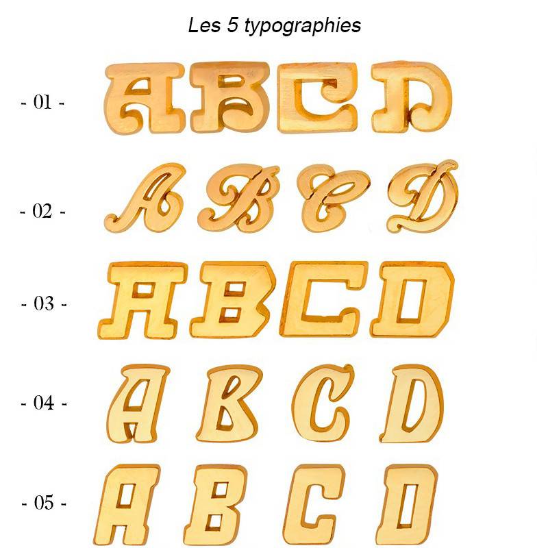5 typographies sont disponibles et présentes parmi les photos ci-contre.