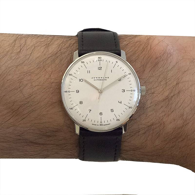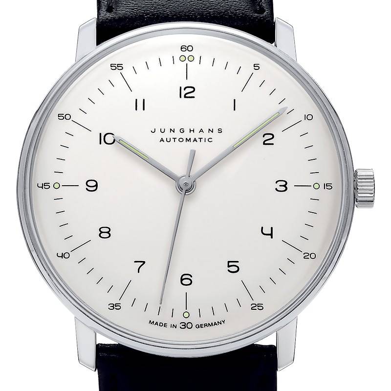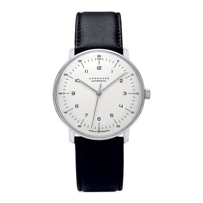 Dans la gamme Max Bill by Junghans, découvrez le modèle élégant et classique "Automatic 27/3500.02 " dessiné par le célèbre architecte et designer Max Bill dans les années 60. Le boitier est en acier inoxydable avec une finition polie. Il est composé d'un cadran de couleur blanche, les marqueurs et les chiffres sont noirs.