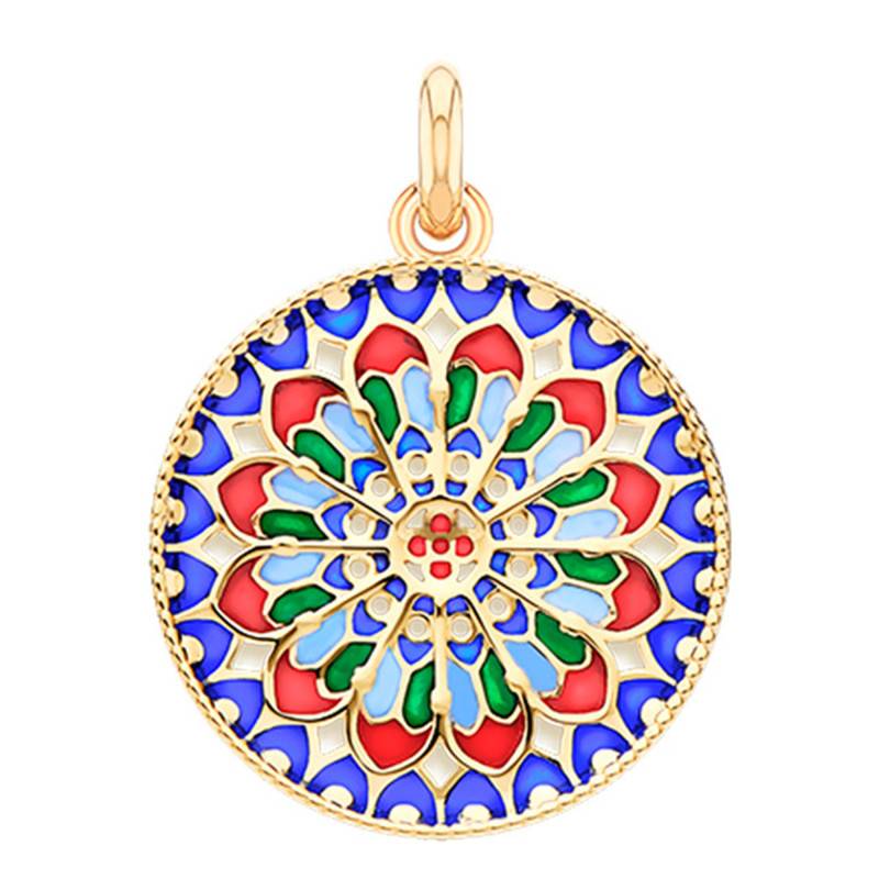 Nous vous proposons de craquer pour cette somptueuse médaille réalisée entièrement en or jaune 750/1000 (18K). Cette médaille a la particularité de représenter sous forme de rosace les vitraux de Notre Dame de Paris. Cette médaille vous dévoile des couleurs réalisées en émaille et elles sont translucides pour admirer toute la beauté. Cette médaille dispose d'un diamètre de 22 mm et vous offre un poids de 4,25 grammes. Vous pourrez aussi bien l'offrir pour un anniversaire, un baptême ou une naissance.
