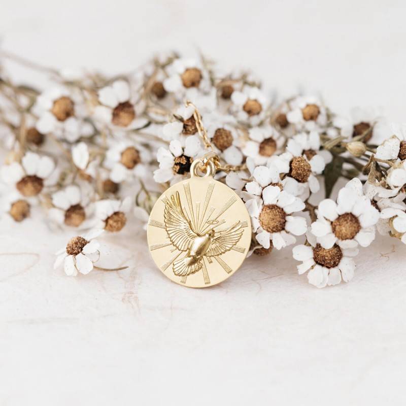 Médaille Saint Esprit en Or Jaune 750, Diamètre 18 mm
