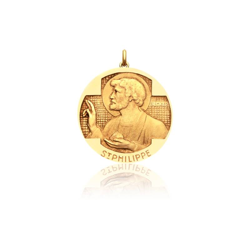 Venez découvrir l'univers Becker à travers cette charmante médaille. Ce bijoutier de renom tire son expertise de ses deux fondateurs : Edmond Becker et Frédéric Brasier. Saint Philippe est un apôtre du Christ originaire de Galilée qui fut crucifié la tête en bas.