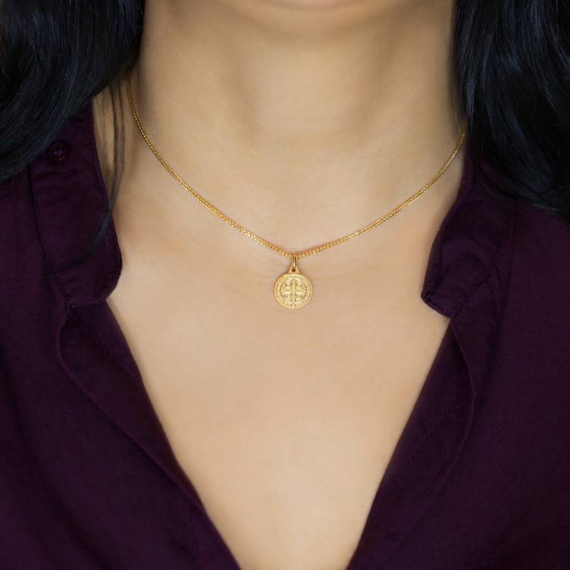 Médaille Scapulaire Saint Benoit en Or Jaune 750, Diamètre 18 mm