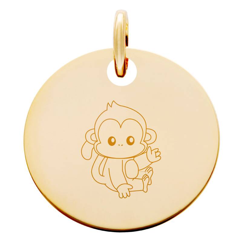 Cette médaille Signe Chinois Singe rayonne d'une éclatante sophistication avec son diamètre de 15 mm. Elle est forgée en laiton et revêtue d'un somptueux plaqué or 750/1000 (18K) de 3 microns. Sur sa surface polie et brillante, un petit singe salue le monde, un symbole astrologique chinois riche en histoires et en significations, promettant protection et joie. Une gravure est possible, pour que cette médaille devienne un symbole unique, porteur de vos propres légendes.