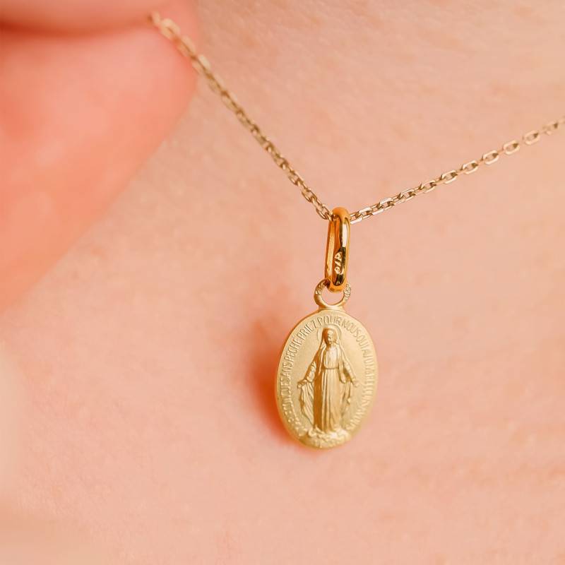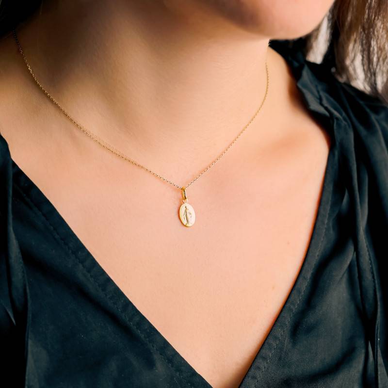 Optez pour la médaille Vierge Marie Miraculeuse, un bijou d'une pureté saisissante. D'un éclat solaire, elle est conçue en or jaune 375/1000, enveloppant cette médaille de sa couleur jaune éclatante. Pesant 0,75 gramme avec une épaisseur de 1,50 mm, elle arbore les dimensions parfaites de 11,00 mm de hauteur pour 8,00 mm de largeur. Fabriquée en France, elle dégage une sérénité douce et émouvante grâce à sa finition brossée et satinée. Sa bélière, d'une hauteur de 6,50 mm, permet une suspension élégante sur la chaîne de votre choix. Ce bijou est accompagné d'une garantie de 2 ans, garantissant sa qualité et sa durabilité au fil du temps.