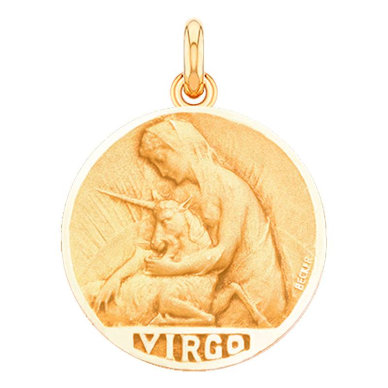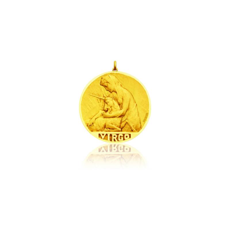 Optez pour cette ravissante médaille ronde sablée en Or Jaune 750/1000 (18K) représente le signe du zodiaque de la Vierge. Le signe astrologique de la Vierge, lié aux personnes nées entre le 24 août et le 23 septembre, est associé à la constellation du même nom. Ce signe correspond à un angle compris entre 150 et 180 degrés comptés sur l'écliptique (= le cercle des signes du zodiaque) à partir du point vernal. Le Signe de la Vierge est lié à l'élément classique de la Terre; il partage cet élément avec le Taureau et le Capricorne. Le signe des Poissons est son opposé polaire. Il s'agit du cadeau idéal pour une naissance, un anniversaire ou une fête. La bélière est ovale. Le diamètre est de 15 mm. Quant au poids d'or moyen, il est de 2,30 grammes. Cette médaille existe en Ø15 mm pour un poids d'or moyen 2,30 gramme, Ø19 mm pour un poids d'or moyen de 3,80 grammes, Ø22 mm pour un poids d'or moyen de 5,50 grammes. Vous pouvez faire graver le message de votre choix au dos de la médaille. Ce bijou s'impose comme une valeur sûre avec sa touche résolument intemporelle.