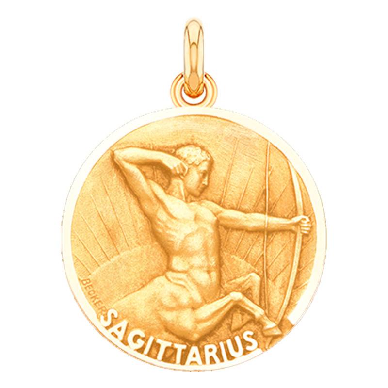 Le Signe du Sagittaire est lié à l'élément classique du Feu; il partage cet élément avec le Bélier et le Lion. Son opposé polaire est la constellation des Gémeaux. Sachez que cette médaille dispose d'une bélière de forme ovale et d'un diamètre de 15 mm. Enfin, son poids d'or moyen est de 2,30 grammes.