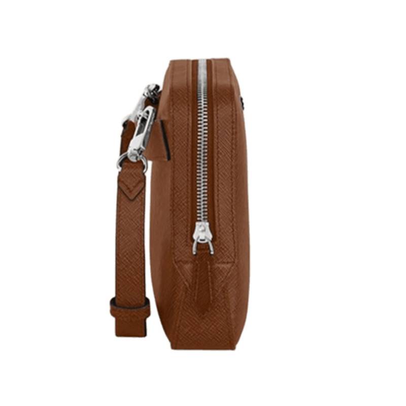 La bandoulière de ce sac constitue un accessoire essentiel, ajoutant à la fois style et praticité. Entièrement ajustable et amovible, elle permet d'adapter le sac à différents styles de port, que ce soit à l'épaule ou en bandoulière. La possibilité de retirer la bandoulière souligne la volonté de Montblanc d'offrir des produits versatiles et multifonctionnels. Il est également muni d'une bande en cuir à l'arrière qui lui permet de s'attacher à des sacs plus grands.