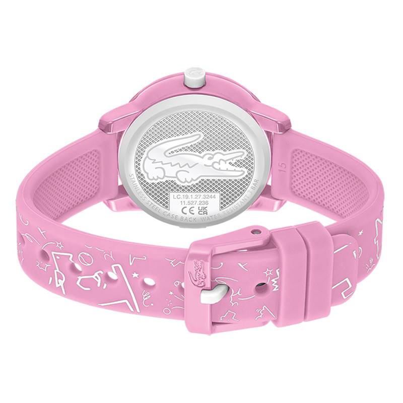 La montre Lacoste 12.12 Kids est une création de renom, parfaitement conçue pour les jeunes aventuriers. Lacoste, une marque synonyme de qualité et d'élégance sportive, propose ici un modèle pensé pour les enfants, un mariage subtil de style ludique et de fonctionnalité. Le boîtier, d'une finesse remarquable avec un diamètre de 32,00 mm et une épaisseur de 8,85 mm, est façonné en acier inoxydable. Légère, avec un poids de 24,80 g, la montre n'encombre pas le poignet de son jeune porteur, garantissant une liberté de mouvement totale et un confort exceptionnel. La couleur rose du boîtier ajoute une touche charmante et vive, parfaitement adaptée à l'univers des enfants.