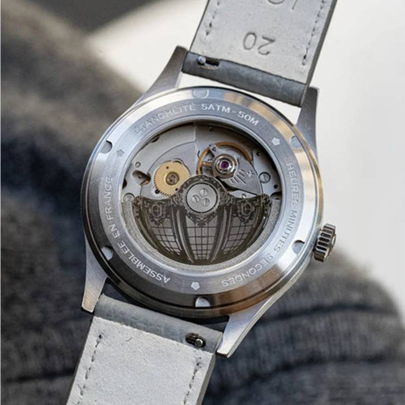 La montre pour homme signée Gustave & Cie se distingue par son boîtier rond en acier inoxydable 316L, un matériau prisé pour sa robustesse et sa finition polie et brillante. Avec un diamètre de 38 mm et une épaisseur de 11,05 mm, elle s'adapte parfaitement au poignet tout en offrant une présence affirmée. Le fond de boîte est transparent et vissé, permettant une découverte fascinante du mouvement en action. Ce garde-temps est non seulement un accessoire de mode mais également un témoin de la précision horlogère, fabriqué avec soin en France.