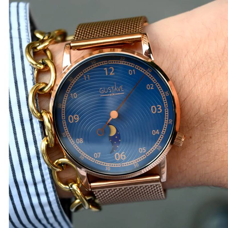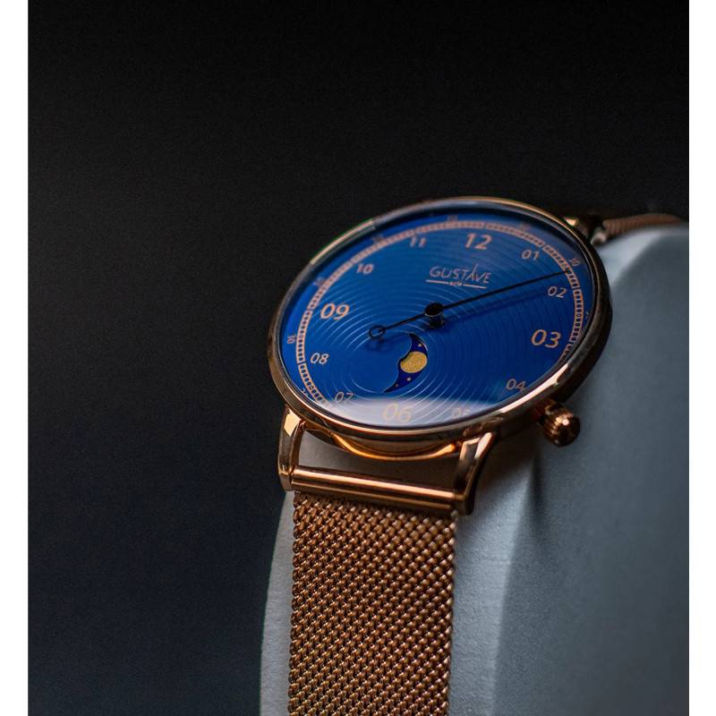 La montre Gustave & Cie modèle Georges est une création horlogère d'exception, exprimant tout le raffinement de l'artisanat français. Le boîtier rond de 36 mm en acier inoxydable 316L est non seulement robuste mais reflète également un éclat grâce à sa finition polie et brillante. Cette combinaison séduisante de matériaux de qualité et d'artisanat soigné confère à ce garde-temps une allure à la fois moderne et classique. Le PVD rose ajoute une dimension supplémentaire de sophistication, offrant une résistance accrue aux rayures et à la corrosion tout en conservant une esthétique inaltérable au fil du temps.
