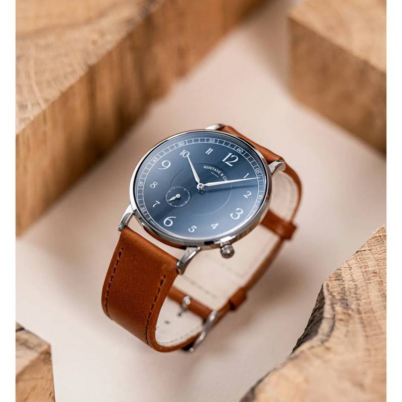 Cette montre Gustave & Cie, avec son boîtier rond discret et élégant, exprime un style raffiné et intemporel. Fabriquée en France, elle présente un diamètre de 40 mm et une épaisseur de 8 mm, résultant en un accessoire sublime et léger, parfait pour une utilisation quotidienne. Le boîtier est réalisé en acier inoxydable, offrant une finition polie et brillante qui rehausse l'éclat du modèle. Un élément clé de la montre est son verre saphir bombé, réputé pour son exceptionnelle résistance aux rayures, garantissant une lecture sans obstructions et une clarté superbe sous toutes les conditions de luminosité. Cette montre associe élégance et fonctionnalité, soulignée par le soin du détail visible à chaque angle.