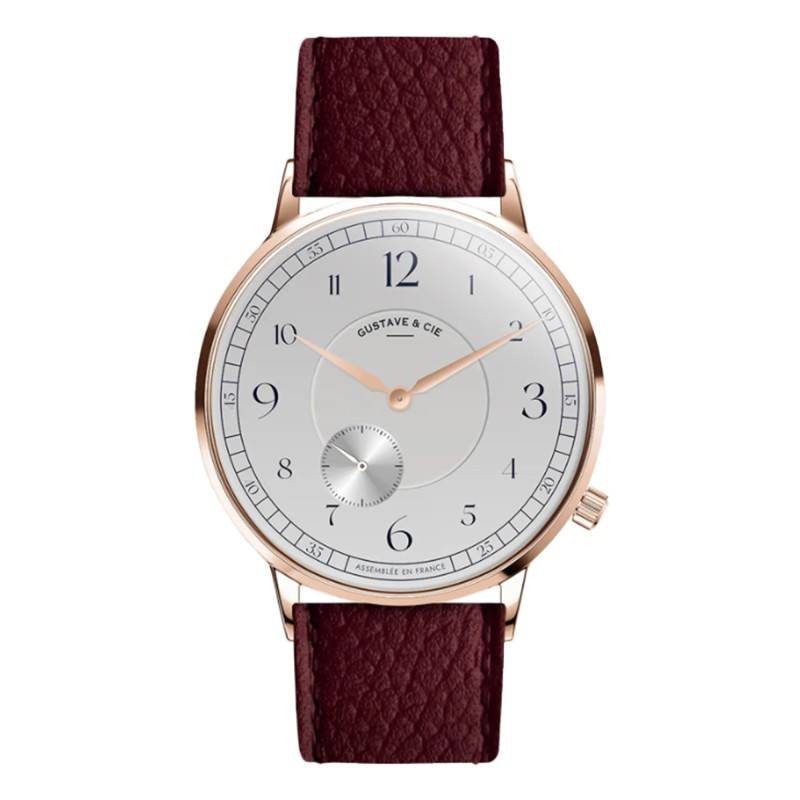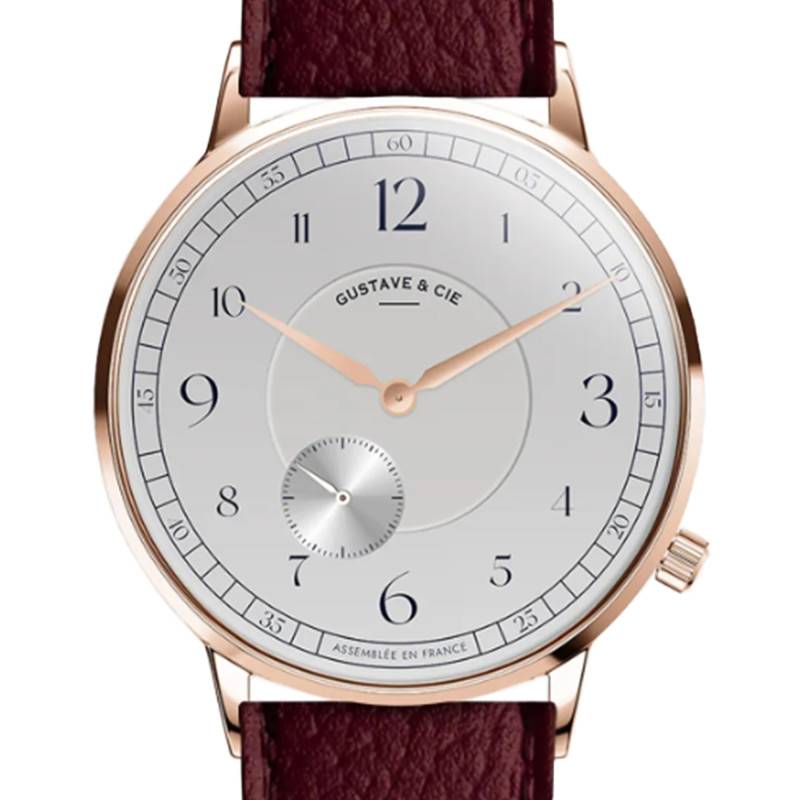 La montre Gustave & Cie Hector Or Rose & Blanc est un symbole d'élégance moderne et de sophistication horlogère. Le boîtier en acier inoxydable de forme ronde avec une finition PVD or rose offre une allure à la fois classique et contemporaine. Mesurant 36 mm de diamètre et 8 mm d'épaisseur, elle présente un équilibre parfait entre discrétion et présence au poignet, ce qui en fait un choix idéal pour ceux qui recherchent une montre élégante sans être trop imposante. La fabrication française garantit une attention exceptionnelle aux détails et une qualité incontestée, renforcée par une garantie internationale de deux ans.