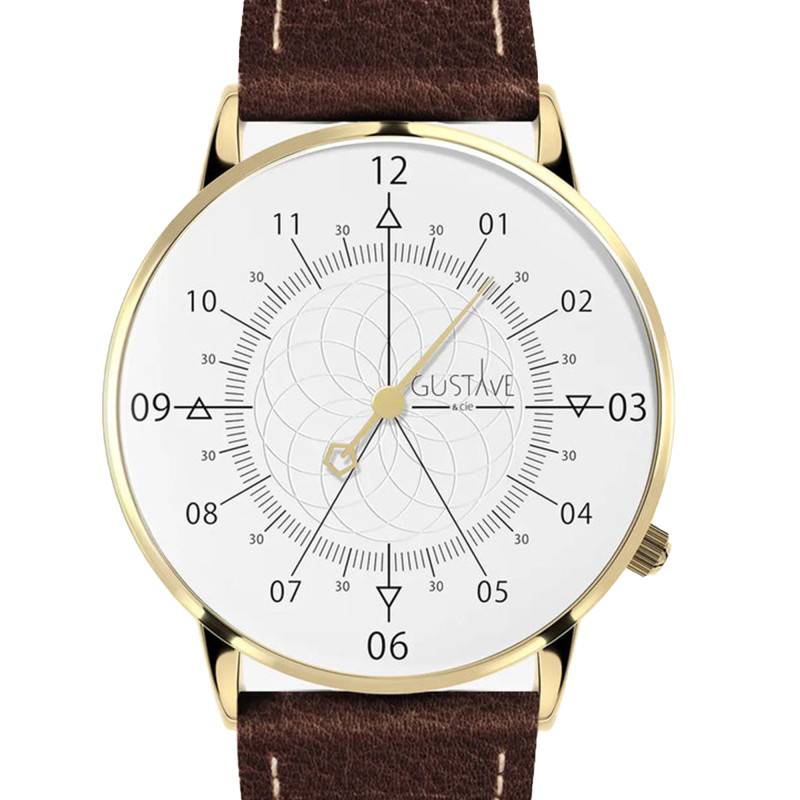 Montre 12H Louis Or & Blanc Cuir Marron Chocolat 36mm