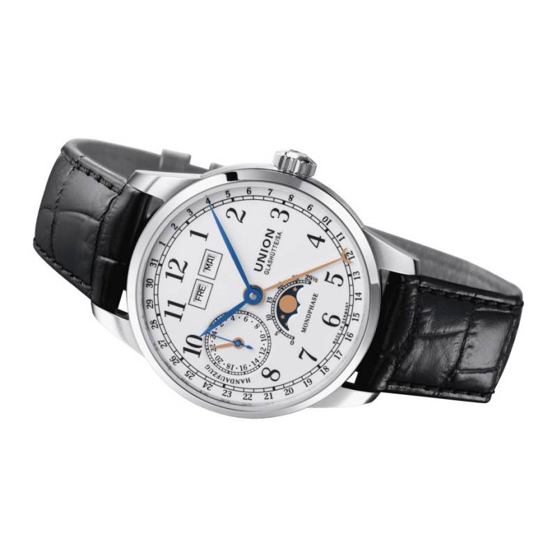 La maison Union Glasshuette a logé à l'intérieur de cet incroyable garde-temps un mouvement UNG-58.S1 très précis. Ce mécanisme équipé de 20 rubis saura vous surprendre par son incroyable réserve de marche de 60 heures. Il assurera le mécanisme des aiguilles avec fiabilité.
